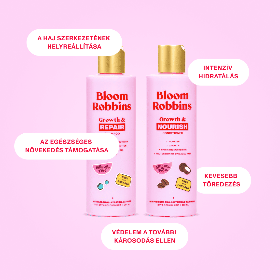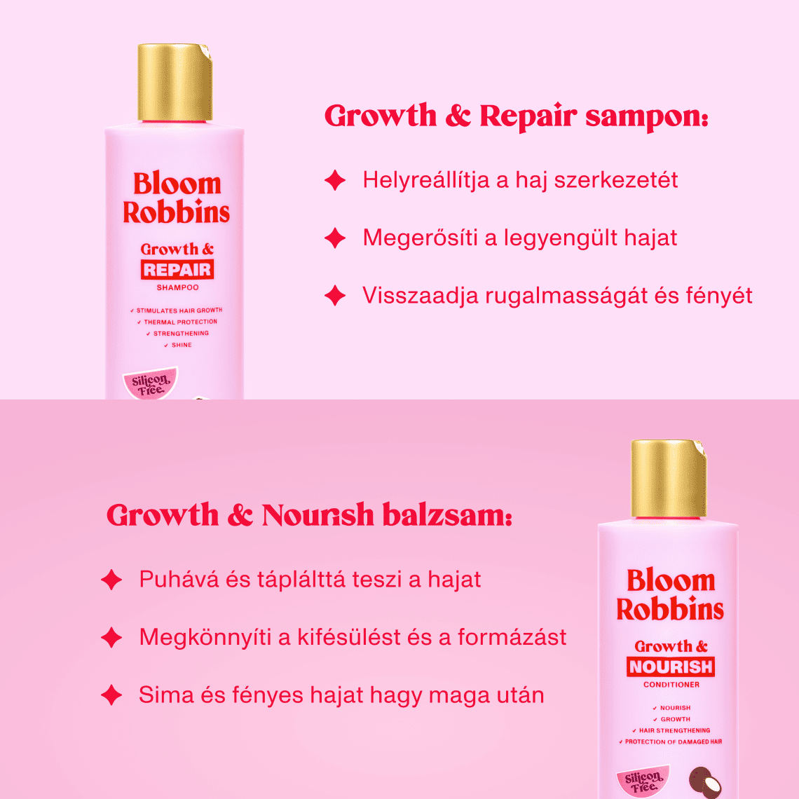 A Growth & Repair sampon prémium keratintartalma mélyen behatol a hajszál szerkezetébe, helyreállítja annak struktúráját és visszaadja szilárdságát. A Growth & Nourish balzsam tápláló sheavaja intenzív hidratálást biztosít, megőrzi a nedvességet, és védőpajzsot képez a további károsodás ellen.