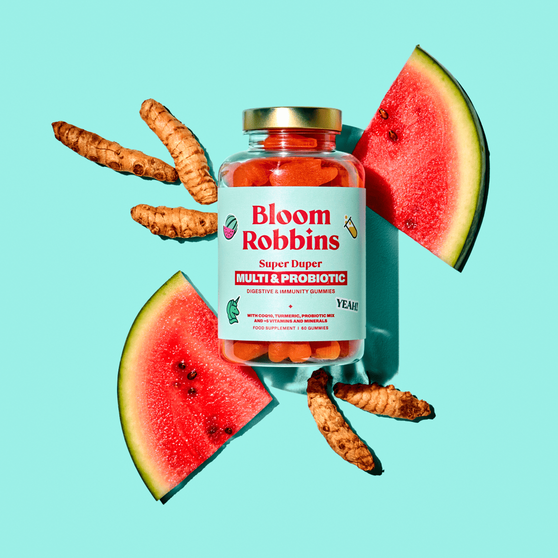 (4 g): FOS (répából nyert fruktooligoszacharidok), víz, aszkorbinsav, zselésítő anyag (E-440 pektin), E-330 citromsav (sav), ergokalciferol, cink citrát, E-331 trinátrium-citrát (savanyúságot szabályozó anyag), probit keverék tindizált 100B (L. rhamnosus és B. lactis), növényi olaj (kókusz), E-160c paprika kivonat (színezék), Q10 koenzim, kurkuma gyökér kivonat (Curcuma longa), természetes aroma (görögdinnye), E-903 karnauba viasz (csomósodást gátló anyag), cianokobalamin 1%, nátrium-szelenit