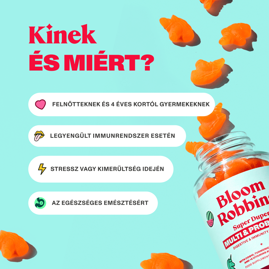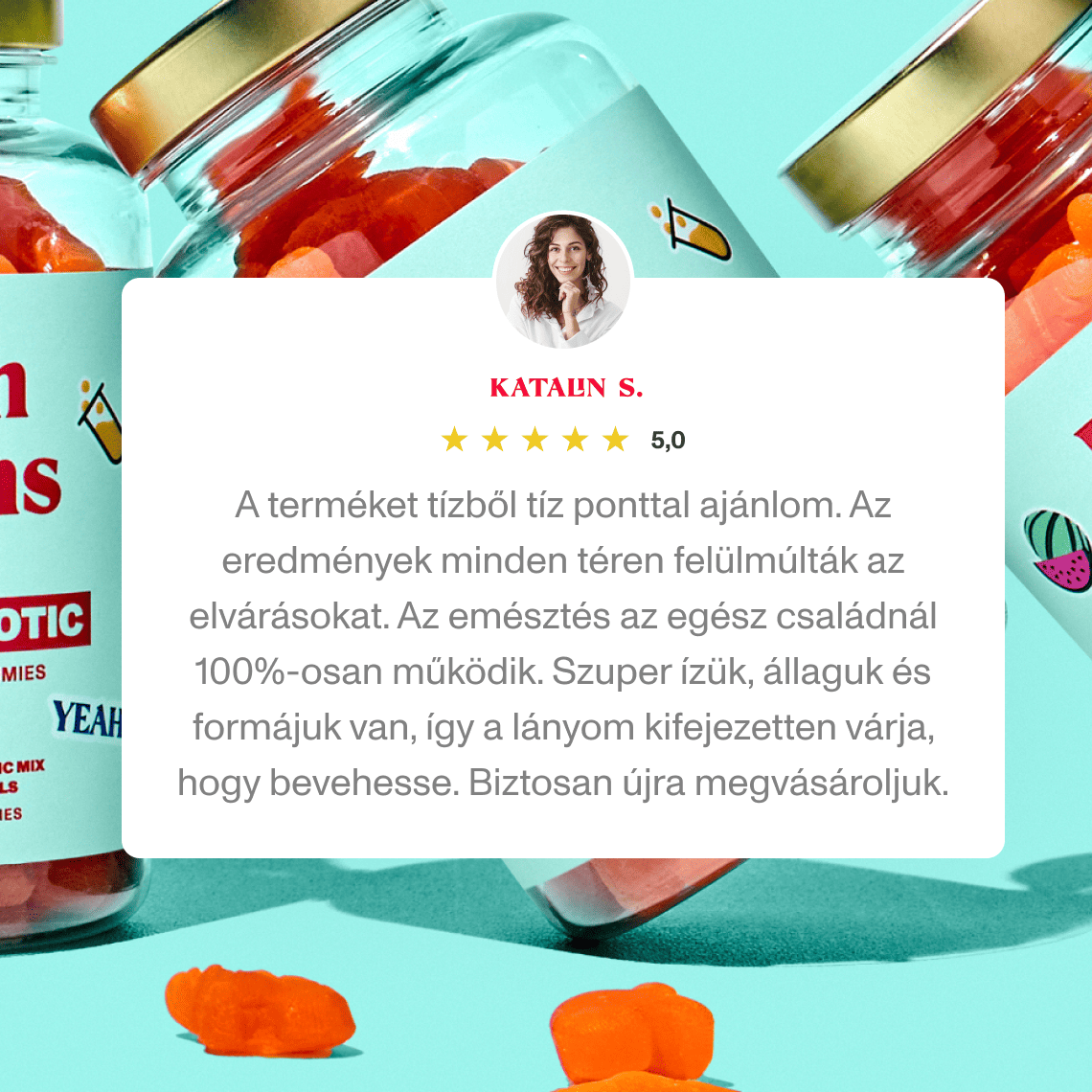 Az ízletes gumicukor formájú probiotikumokat az egész család örömmel fogyaszthatja, beleértve a 4 évesnél idősebb gyermekeket is.