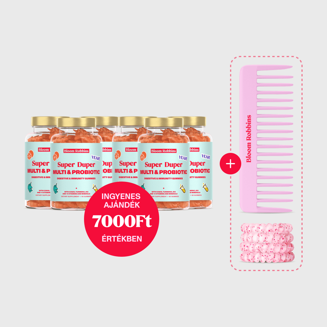 (4 g): FOS (répából nyert fruktooligoszacharidok), víz, aszkorbinsav, zselésítő anyag (E-440 pektin), E-330 citromsav (sav), ergokalciferol, cink citrát, E-331 trinátrium-citrát (savanyúságot szabályozó anyag), probit keverék tindizált 100B (L. rhamnosus és B. lactis), növényi olaj (kókusz), E-160c paprika kivonat (színezék), Q10 koenzim, kurkuma gyökér kivonat (Curcuma longa), természetes aroma (görögdinnye), E-903 karnauba viasz (csomósodást gátló anyag), cianokobalamin 1%, nátrium-szelenit